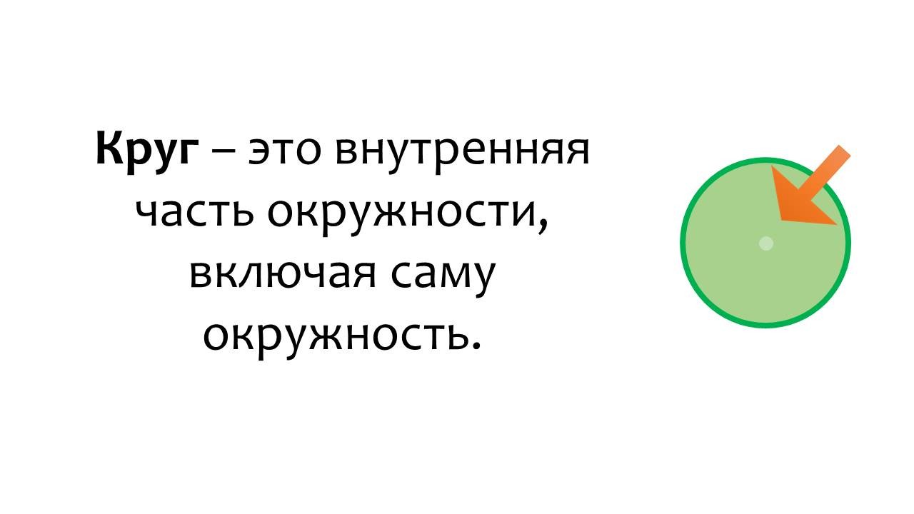 Круг – это внутренняя часть окружности, включая саму окружность.