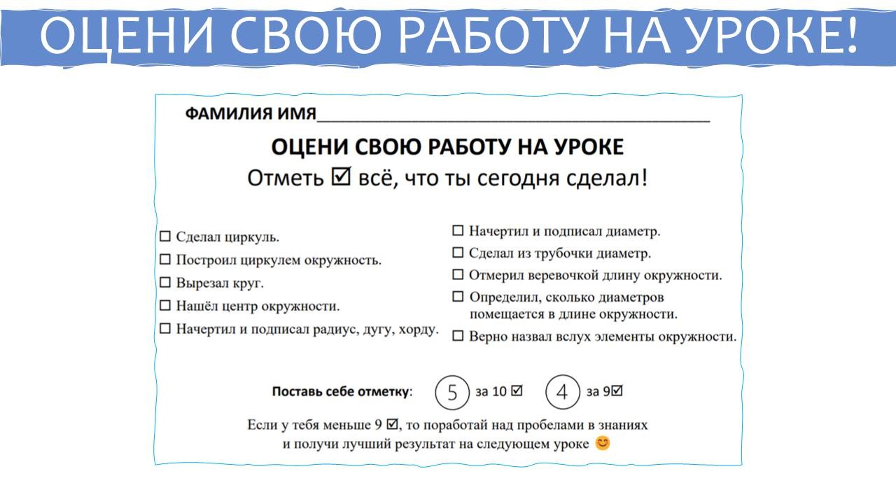 Достаньте из большого конверта листы самооценки подпишите и заполните их.