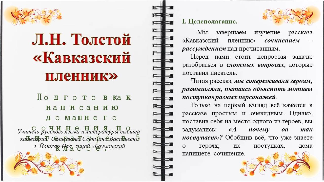 Л.Н.Толстой "Кавказский пленник". Подготовка к написанию домашнего сочинения