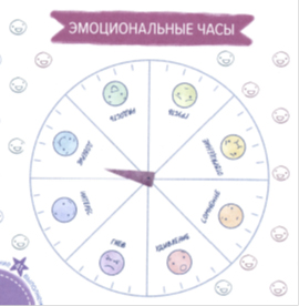 Реквизит: макет часов, наглядный материал на доске фотографии людей с разными эмоциями.