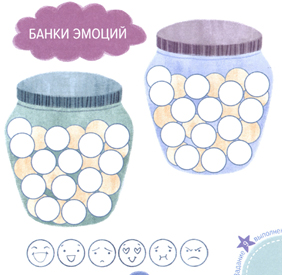 Раскрась смайл в банке, который похож на твое настроение в детском саду сегодня. Дети передают друг другу шаблон.