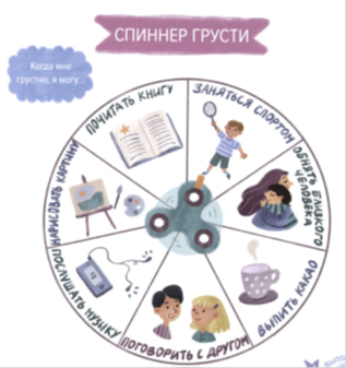 В секторах написаны полезные дела, которые помогут тебе победить грусть. Крути спинер!