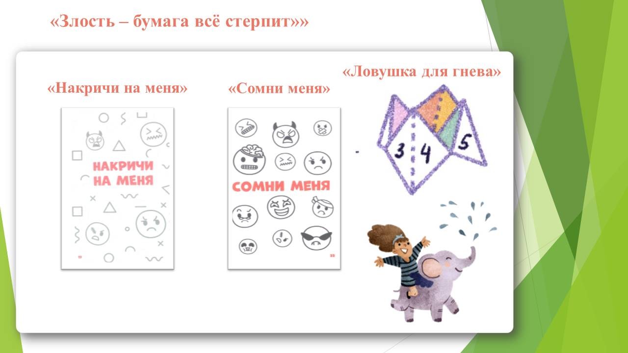 Педагог: «Возьми её в обе руки, мысленно представь свой страх, подумай о нём. А затем громко крикни в листочек «Я не боюсь!», скомкай этот листок и выброси».
