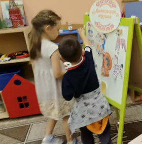- Правильно! Это козлик. И сегодня мы с Вами будем расписывать дымковского козлика. Но роспись будет не совсем обычная. Расписывать будем не красками, а пластилином.