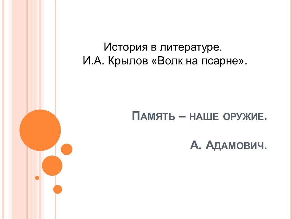 Презентация к реадаптационому занятию для учащихся 4-х классов "История в литературе. И.А.Крылов "Волк на псарне"