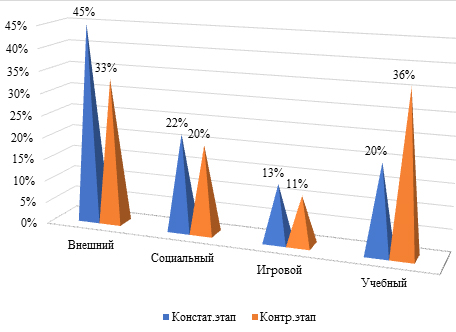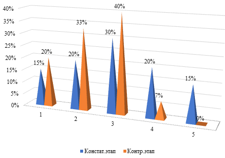 Сравним результаты исследования по данной методике на констатирующем и контрольном этапах исследования. На рис. 1 наглядно видны положительные изменения.