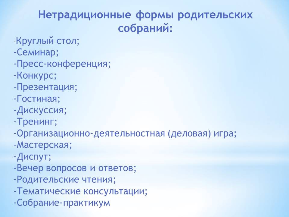 «Круглый стол» как наиболее эффективная и современная форма проведения родительских собраний
