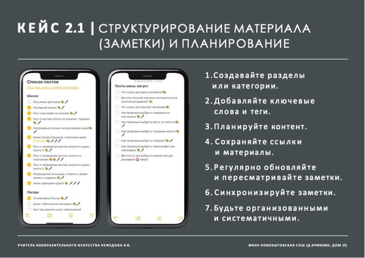 Разделите заметки на различные категории, например, "Идеи для постов", "Планы контента", "Задачи на неделю" и т.д. Это поможет вам быстро находить нужную информацию и организовать свои мысли.