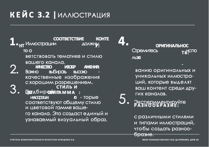 Подбирайте иллюстрации, которые соответствуют общему стилю и цветовой гамме вашего канала. Это создаст единый и узнаваемый визуальный образ.