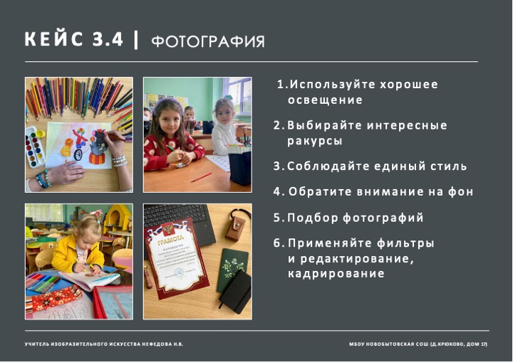 Кроме того, обратная связь от родителей после просмотра фотографий и фотоотчетов может быть очень ценной для вас. Приятные отзывы, слова благодарности и поддержки помогут вам почувствовать себя увереннее и оценить свою работу. Это подтверждение того, что ваш труд не проходит даром, и что вы делаете важное дело.