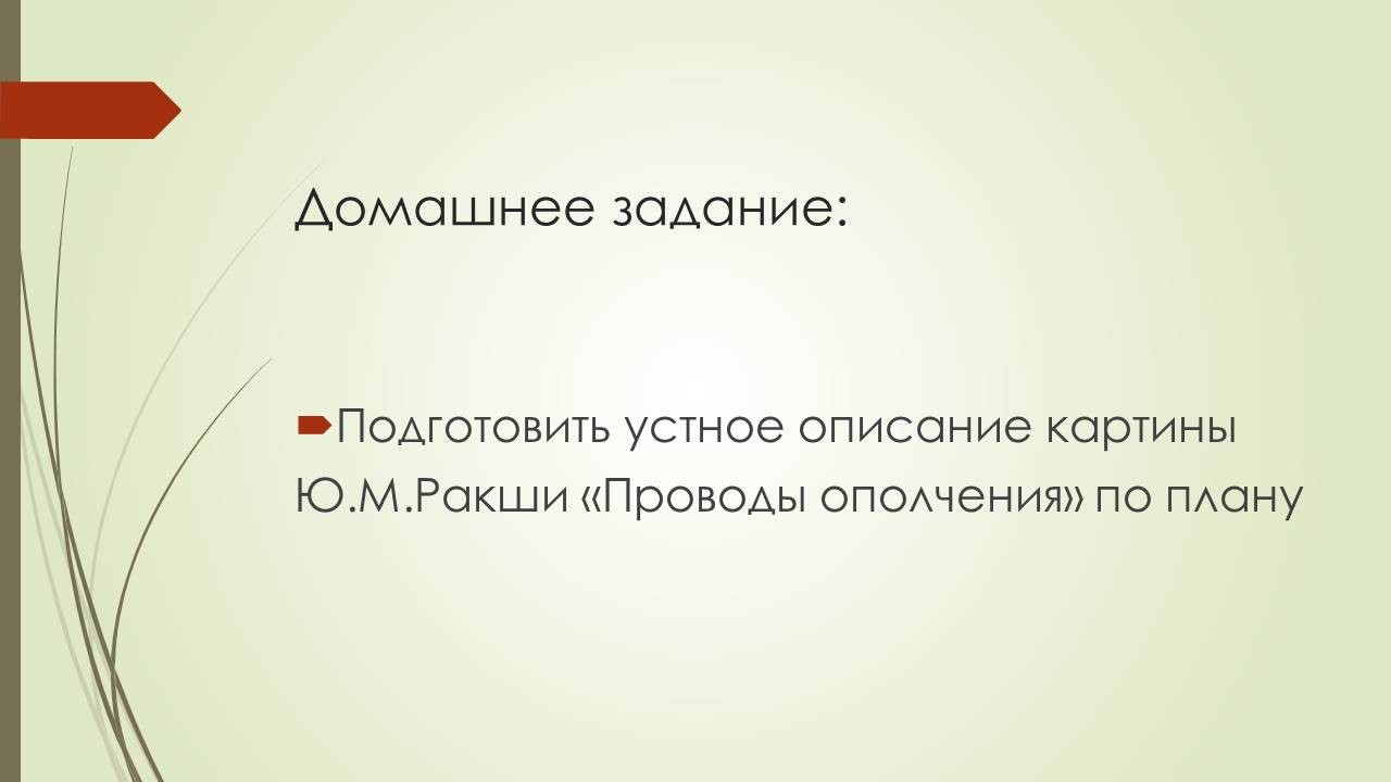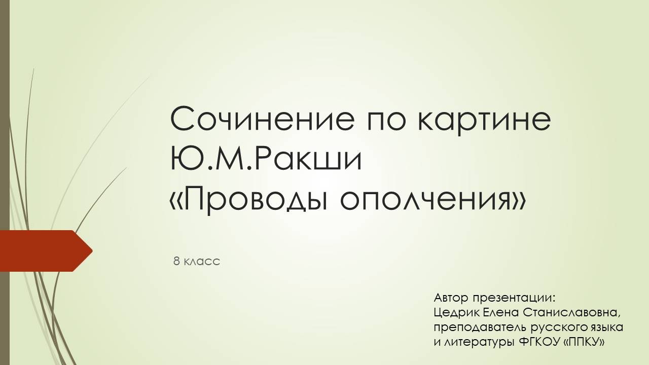Презентация к уроку русского языка в 8-м классе. Подготовка к сочинению по картине Ракши "Проводы ополчения"