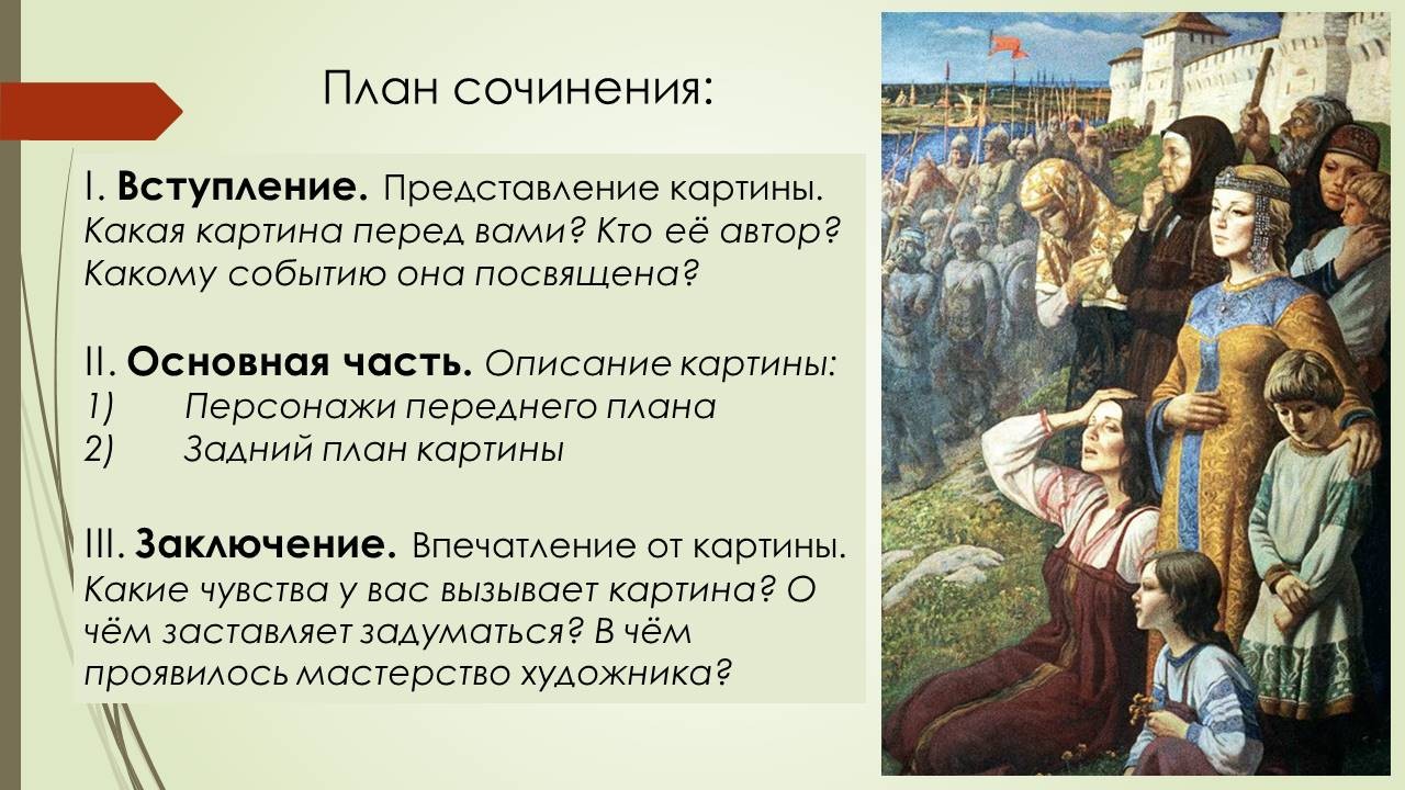 Ключевые слова: сочинение по картине, Куликовская битва, сочинение по картине Ракши "Проводы ополчения"