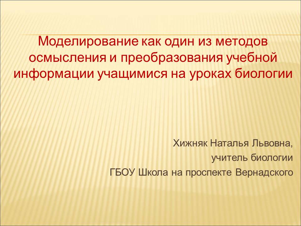 Моделирование на уроках биологии Хижняк Наталья Львовна, учитель биологии Разделы: Биология Работа выполнена в форме презентации 4.12.2025