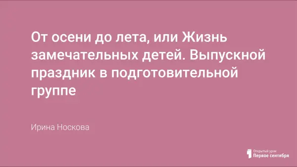 Сценарий выпускного праздника в детском саду необычен тем, что вручение дипломов и подарков выпускникам происходит не в завершении, а в ходе всего праздника. В проведении праздника активное участие принимают родители: папа исполняет роль Деда Мороза, мамы – роли Осени и Весны. Дети еще раз вспоминают и эмоционально переживают самые яркие моменты последнего года пребывания в детском саду. Праздник построен на знакомом и любимом детьми музыкальном материале, разученном в течение учебного года.