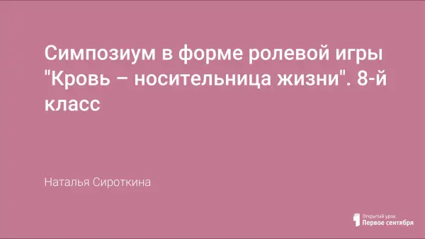 Симпозиум в форме ролевой игры "Кровь – носительница жизни". 8-й класс