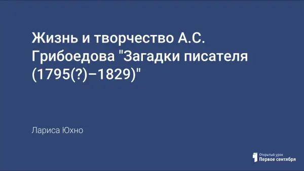 Жизнь и творчество А.С. Грибоедова "Загадки писателя (1795(?)–1829)"