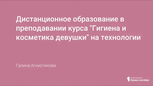 Представлено тематическое планирование, краткое описание структуры уроков и возможностей системой управления обучением LMS Moodle, на базе которой создан модуль «Гигиена и косметика девушки».