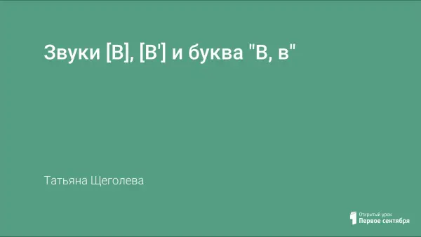 Учащиеся на уроке закрепляют знания детей о том, что буква "В" на письме передает твердый и мягкий согласные звуки [В], [В']. Учатся проводить прямые и округлые линии по образцу, печатая буквы, совершенствуют навыки умения сопоставлять, сравнивать, проводить звуковой и слоговой анализы слов. Воспитывают самостоятельность и старательность в выполнении самостоятельных заданий, командный дух, коммуникативные умения, любовь к чтению.