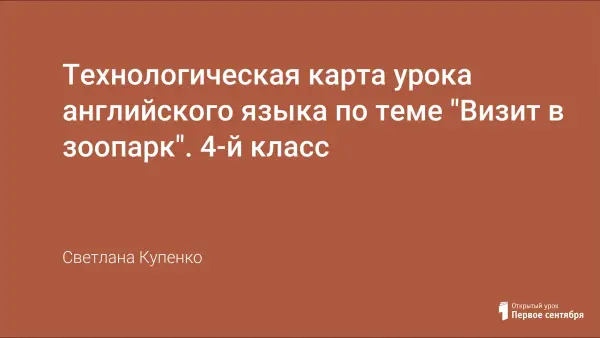 Данный материал представляет собой технологическую карту урока английского языка в 4-м классе по теме «Визит в зоопарк». Изначально она предназначалась группам, обучающимся по учебнику “Spotlight”, но, с равным успехом, её можно использовать и наравне с другими УМК. Данный материал демонстрирует возможности использования различных мультимедийных источников и технологию Wordle. Надеюсь, учителя, использующие коммуникативную методику в преподавании, найдут данную статью полезной.