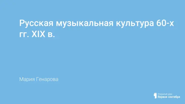Русская музыкальная культура 60-х гг. XIX в.