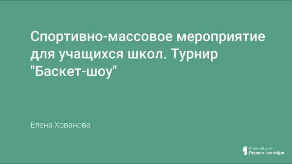 Цель урока: пропаганда здорового образа жизни; развитие индивидуальных способностей личности, развитие таких качеств личности, как уверенность, смелость, умение лидировать. Турнир "Баскет-шоу" включает в себя семь конкурсных заданий, различных по внутреннему содержанию.
