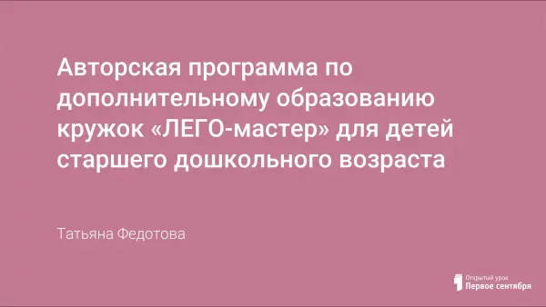 Программа «Лего-мастер» развивает у старших дошкольников первоначальные конструкторские умения на основе LEGO-конструирования. Курс LEGO-конструирования в детском саду – пропедевтический, готовит к дальнейшему изучению LEGO-конструирования с ИКТ-технологиями в школе.