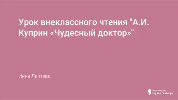 Урок внеклассного чтения "А.И. Куприн «Чудесный доктор»"