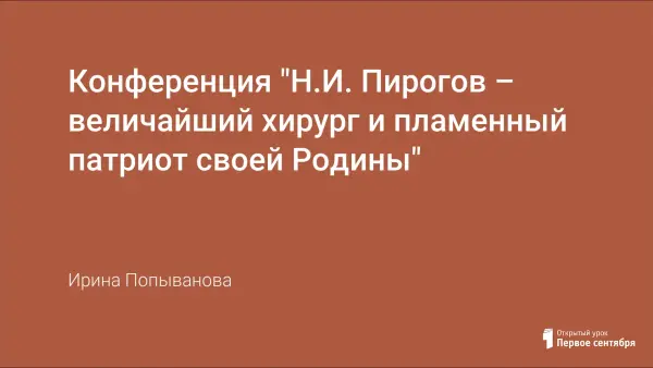 Николай Иванович Пирогов – основоположник отечественной топографической анатомии, военно-полевой хирургии, пионер эфирной анестезии, выдающийся педагог, общественный деятель и пламенный патриот своей Родины – наша национальная гордость. Его любили за простоту, благородство и бескорыстие. Бедняков и учащихся он лечил бесплатно.