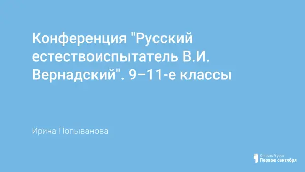Цель урока: актуализировать и расширять знания о жизни и деятельности великого русского естествоиспытателя В.И. Вернадского. Учащиеся знакомятся с биографией В.И. Вернадского, учением о биосфере и ноосфере.