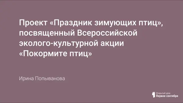 Цель проекта: расширение знаний о перелетных и зимующих птицах, населяющих Кировскую область, участие во Всероссийской акции «Покормите птиц».