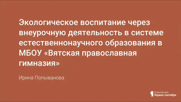 Экологическое воспитание — это формирование у школьников заботливого, бережного отношения к природе и всему живому на Земле, готовности к рациональному природопользованию и сохранению природных богатств. Основной целью экологического воспитания является формирование экологической культуры личности. Экологическая культура — важнейшая часть общей культуры, проявляющаяся в духовной жизни и поступках, это качество личности по осознанию ценности жизни, природы и проявлению активности в их защите.