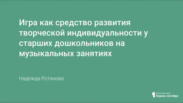 Автор ищет интересные и нетрадиционные способы творческого взаимодействия с детьми. Рассматривает структуру музыкального занятия. Ключевые понятия урока – «креативность», «творчество», «индивидуальность». Цель: развитие музыкального творчества у старших дошкольников.