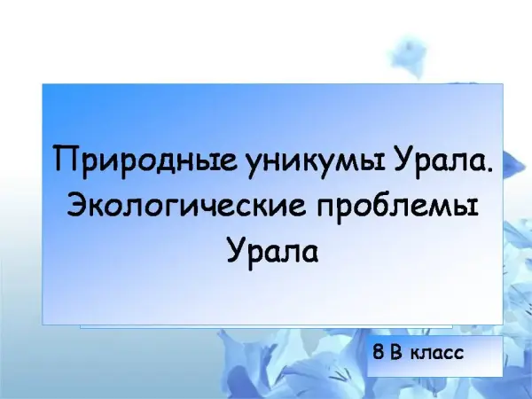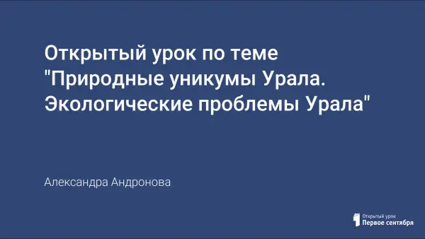 Урок знакомит учащихся с наиболее интересными объектами Урала и выявляет экологические проблемы этого региона. Класс делится на четыре команды и защищает презентации, подготовленные дома.