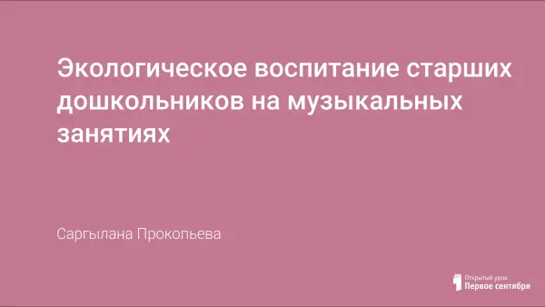 Дети очень восприимчивы к музыке. Музыкальная деятельность формирует экологическое воспитание, поскольку музыка имеет эмоциональную, двигательную, эстетическую, гуманную направленность, в результате чего ребенок познает мир умом и сердцем.