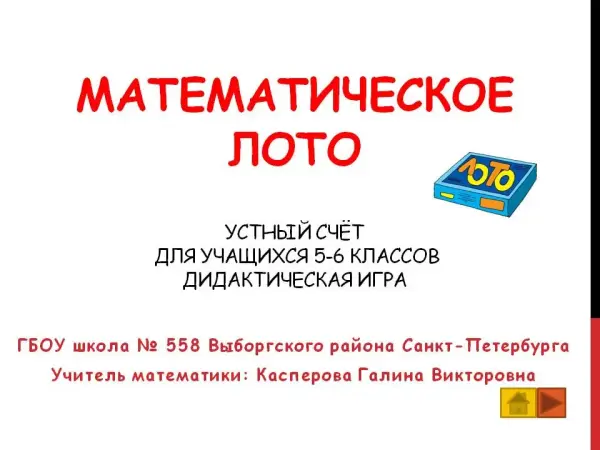 Математическое лото не отменяет, а дополняет, изменяет традиционные виды контроля в обучении математике, проверяет знание терминологии, процедур, правил, умение анализировать.