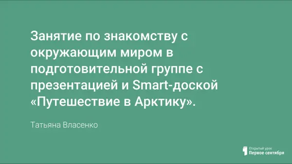 Занятие в доступной и наглядной форме знакомит ребят с особенностями природных условий Арктики, представителями животного мира, деятельностью человека, его жилищем на Северном полюсе, транспортом, используемом в регионе, героями Арктики, И.Папаниным и В.Чкаловым, развивает патриотические чувства.