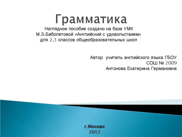 В статье представлены три презентации на базе УМК М.З. Биболетовой «Английский с удовольствием»: “The Alphabet”, “Grammar”, “Appearance and Character”. Материал всех презентаций можно использовать для показа на каждом уроке в соответствии с программой или на обобщающем занятии, а также после длительного перерыва (например, после каникул), для обучения детей с ограниченными возможностями.