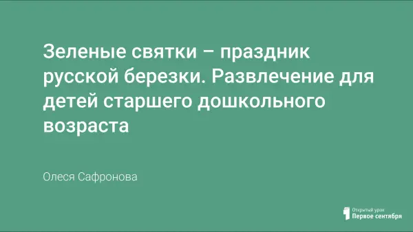 Неделя перед днем Святой Троицы называется троицко-семицкая – от слова Семик. Это один из самых главных праздников земледельческого календаря, который приходится на седьмой четверг после Пасхи. Эту неделю называют еще зелеными святками, они посвящены концу весеннего периода, пробуждению природы и началу лета. Детей старшего дошкольного возраста можно познакомить с комплексом обрядов, знаменующих встречу лета, прославляющих зеленеющую землю с центральным персонажем – березкой.