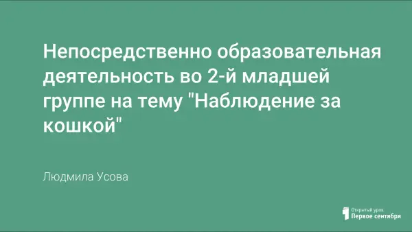 Непосредственно образовательная деятельность во 2-й младшей группе на тему "Наблюдение за кошкой"