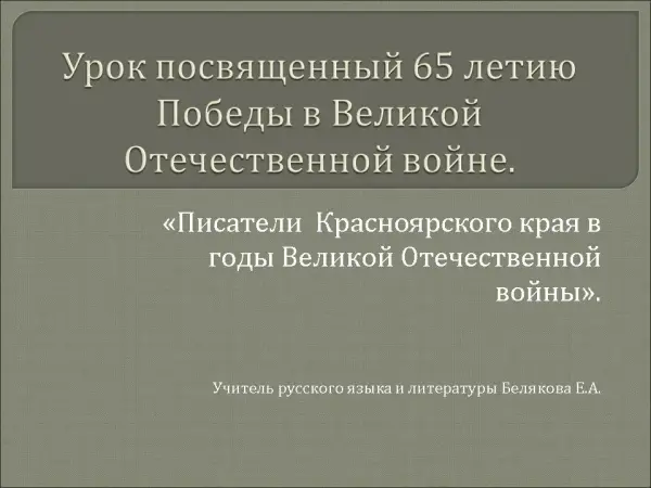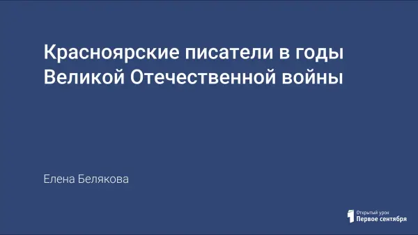 Урок знакомит учащихся с военной биографией трех красноярских писателей, воспитывает уважительное отношение учащихся к жизни и творчеству писателей Красноярского края, развивает внимательность, умение слушать собеседника, способность анализировать услышанное, корректирует произношение звуков в связной речи учащихся.