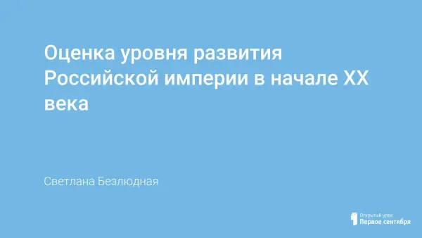 Цели урока: создать условия и осуществить оценку уровня развития Российской империи в начале XX века; выяснить особенности территориальной структуры и состава населения Российской империи в начале XX века и их последствия для страны; сформулировать основное направление развития России; проанализировать количественные и качественные показатели экономического развития России в начале XX века.