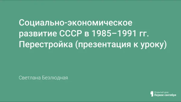Урок истории в 11-м классе посвящён сложному и противоречивому этапу в истории России – Перестройке. Урок «Социально-экономическое развитие СССР 1985–1991 гг. Перестройка», рассчитан на 45 минут. Цель урока: изучить начальный этап политики перестройки в СССР, ее причины, задачи, последствия экономических и политических реформ.