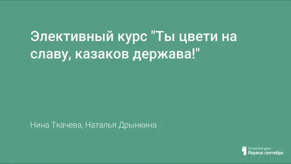 Элективный курс "Ты цвети на славу, казаков держава!"