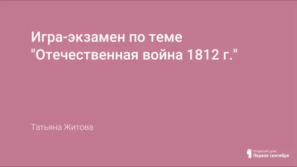 Урок проводится на неделе истории как внеклассное мероприятие. Расширяются знания о событиях Отечественной войны, героях, ученики знакомятся с произведениями искусства и вкладом жителей Архангельской губернии в победу над Наполеоном.