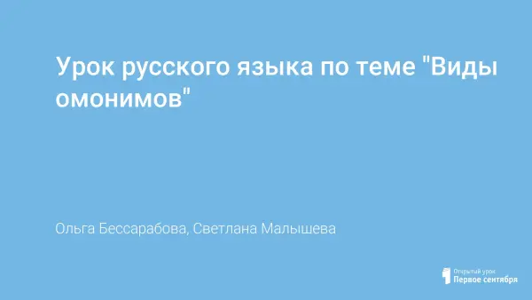 С видами омонимов (лексическими омонимами, омофонами, омоформами, омографами) учащиеся знакомятся в средней школе (на уроках в 7-м классе по программе С.И. Львовой) или в старшей школе. Урок содержит материал, который, с одной стороны, отрабатывает умение определять виды омонимов, а с другой стороны, совершенствует речевые навыки.