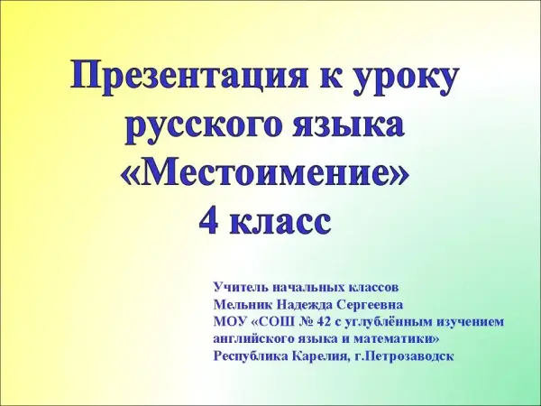 Статья содержит педагогический опыт и сценарий обобщающего урока по теме «Местоимение» и презентацию к нему, дидактические игры, физминутки.