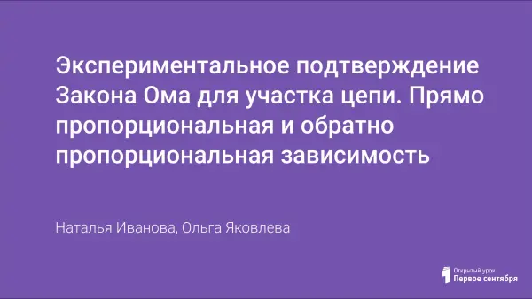 Экспериментальное подтверждение Закона Ома для участка цепи. Прямо пропорциональная и обратно пропорциональная зависимость