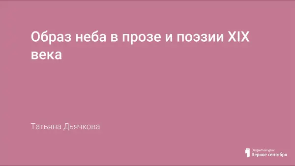 Урок предполагает обращение к знаковым произведениям русской литературы XIX века, где возникает образ неба. Для учеников важно увидеть в небе не элемент пейзажа, а сюжетную единицу, которая тесно связана с главными образами. Рассматривая эпизоды из уже прочитанных произведений, учащиеся имеют возможность взглянуть на героев подчас с неожиданной стороны, прочесть философский подтекст, глубже понять авторский замысел.
