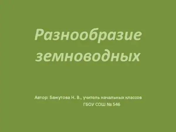 Цель урока: ввести понятия «земноводные», «головастики»; выделить общие черты и различие лягушки и жабы; рассмотреть развитие лягушки; познакомить с другими земноводными – тритоном и саламандрой; развивать познавательный интерес к животному миру; воспитывать бережное отношение к природе.