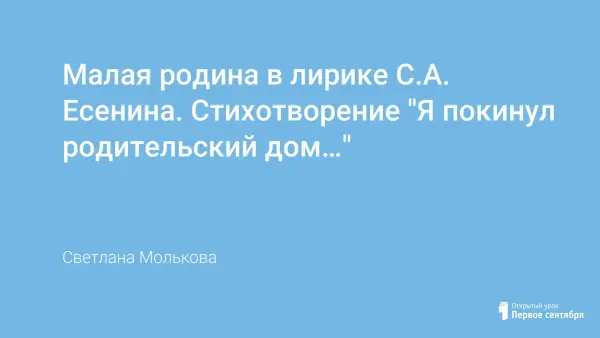 Автор знакомит учащихся с биографией и творчеством С.А. Есенина. Готовит учащихся к восприятию нового материала через заочную экскурсию по родному краю поэта, учит понимать лирические образы, рисуемые поэтом, формирование таких понятий, как "истоки поэзии", "метафора", "эпитет", "сравнение", "мужская и женская рифмы", "способы рифмовки", "лиризм".